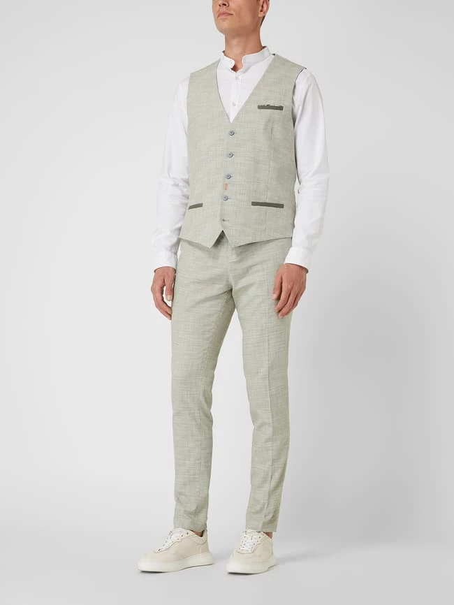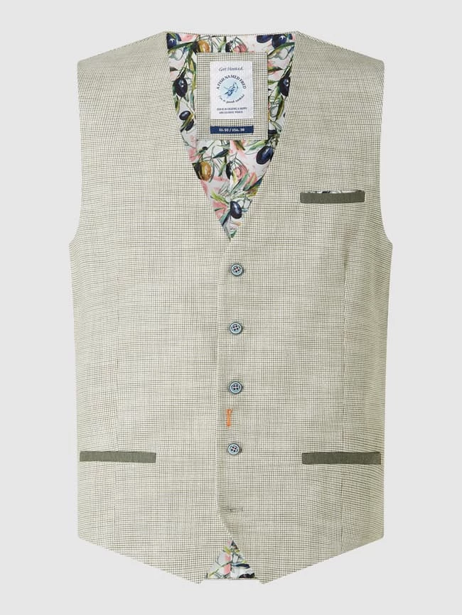 Die Weste von A Fish Named Fred ist aus einer Baumwollmischung mit Stretch-Anteil gefertigt. Sie kommt in gerader Passform mit Hahnentritt, Leistentaschen und verstellbarem Riegel auf der Rückseite.