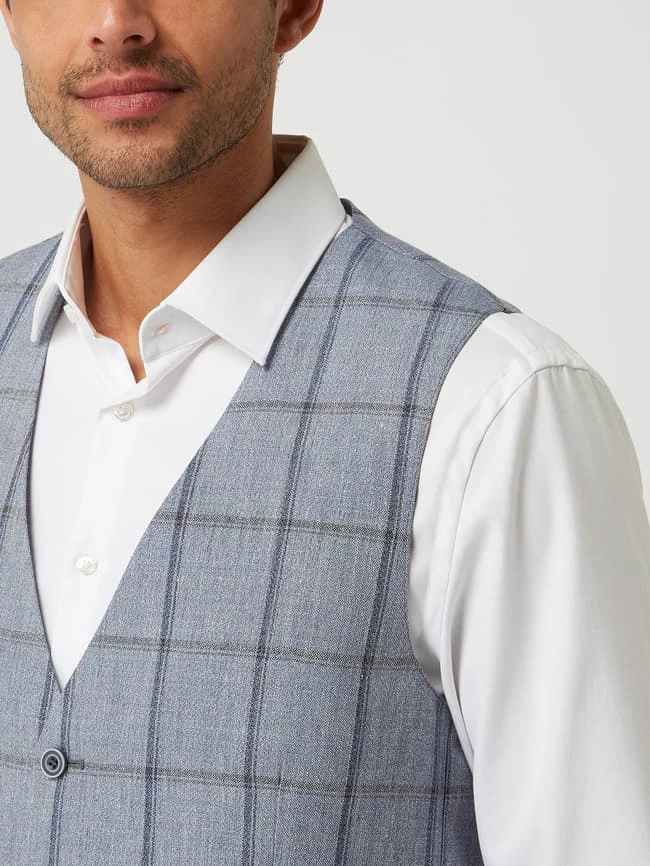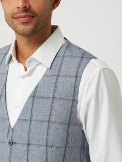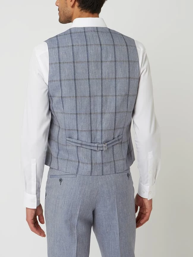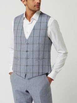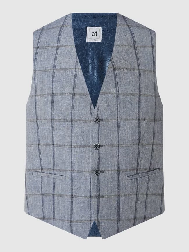 Die Weste von atelier torino ist aus einem Leinen-Schurwoll-Mix gefertigt und gerade geschnitten. Sie kommt mit Gitterkaro, Knopfleiste und Leistentaschen.