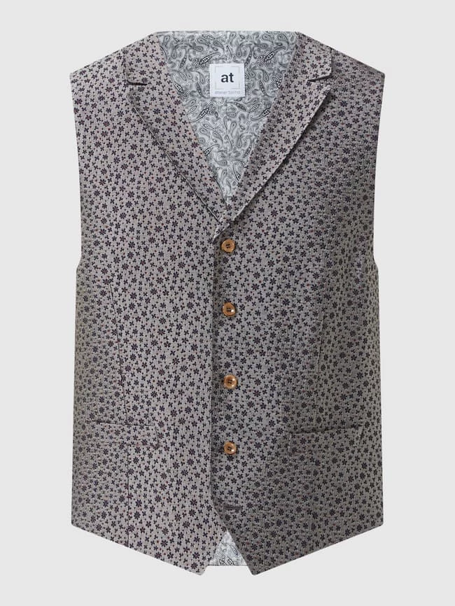 Die Weste von atelier torino ist aus strapazierfähigem Material gefertigt. Sie kommt in gerader Passform mit Allover-Muster, Reverskragen und Leistentaschen.