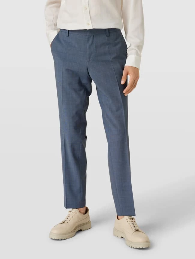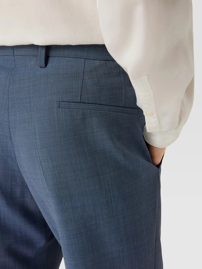 Die Anzughose von BOSS ist aus einem Material-Mix mit Schurwoll-Anteil gefertigt und im Regular Fit geschnitten. Sie zeigt sich mit Bundfalten und Leistentaschen am Gesäß.