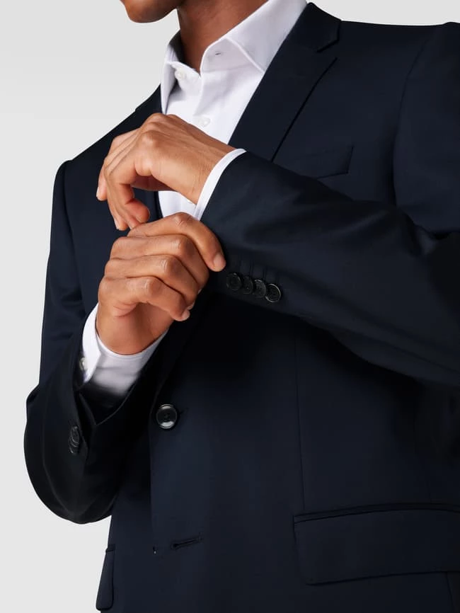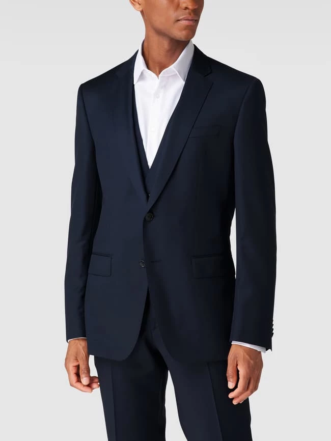 Das 2-Knopf-Sakko von BOSS ist aus reiner Schurwolle gefertigt und schmal geschnitten. Es kommt mit fallendem Revers, Brustleistentasche und Handstichkanten.