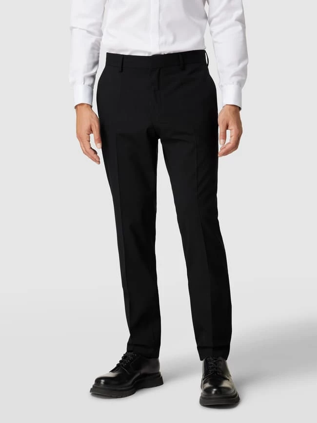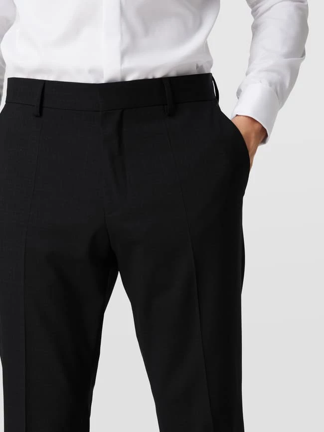 Die Anzughose von BOSS ist aus einem Schurwoll-Mix gefertigt und im Slim Fit gehalten. Sie kommt mit Eingrifftaschen, Bundfalten, Leistentaschen sowie Haken- und Reißverschluss.