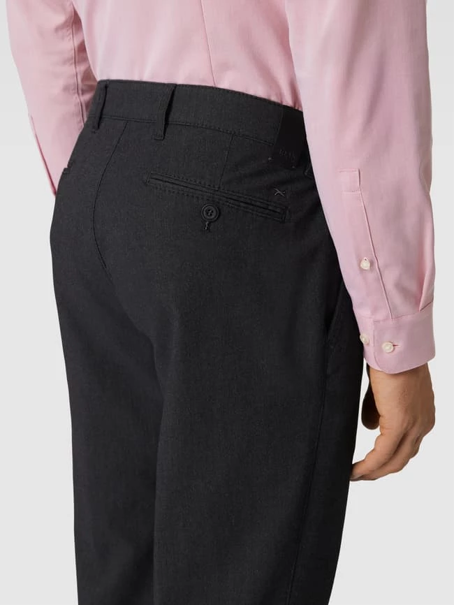 Die Anzughose von BRAX ist aus einem Baumwoll-Mix mit Stretch-Anteil gefertigt und gerade geschnitten. Sie kommt in melierter Optik mit seitlichen Eingrifftaschen und Knopf- und Reißverschluss.