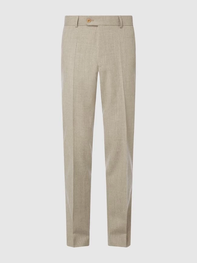 Die Anzughose von Carl Gross ist aus reiner Schurwolle gefertigt. Sie kommt in zulaufender Passform mit Eingrifftaschen und Bügelfalten.