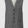 Die Weste von Carl Gross ist aus reiner Schurwolle gefertigt. Sie kommt in gerader Passform mit Webmuster, Schalkragen und Leistentaschen.