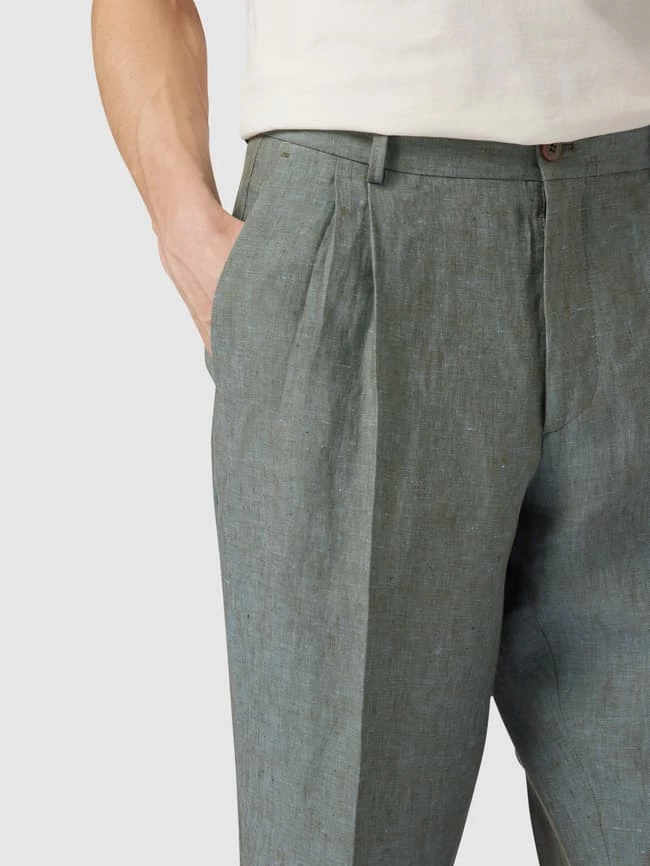 Die Anzughose von CG Club of Gents ist aus reinem Flachs gefertigt und im Oversized Fit gehalten. Sie kommt mit Bundfalten, französischen Eingrifftaschen und Leistentaschen am Gesäß.