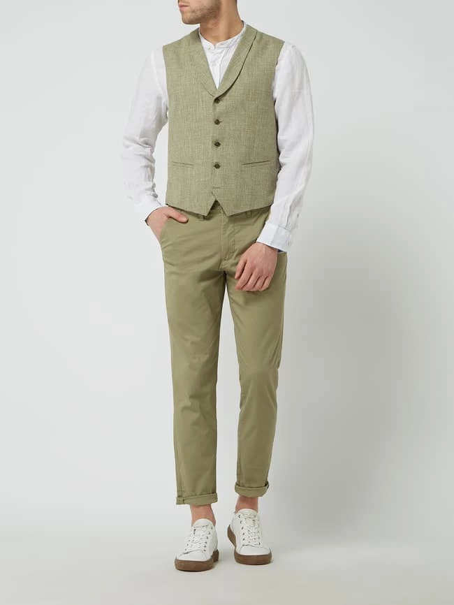 Die Weste von CG – Club of Gents ist aus Baumwolle gefertigt und gerade geschnitten. Sie kommt mit Webstruktur, Schalkragen und Leistentaschen.