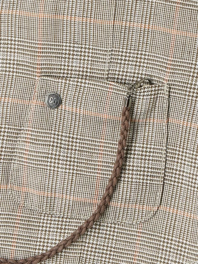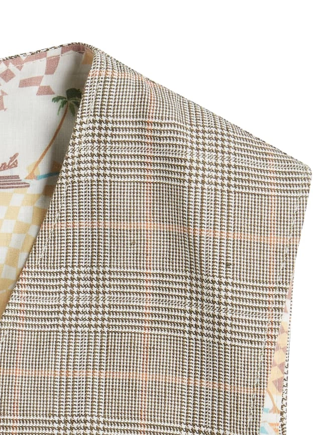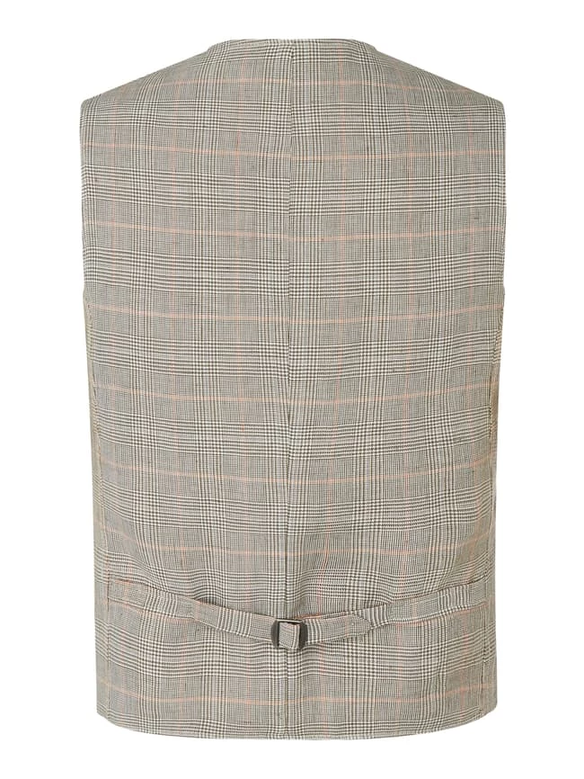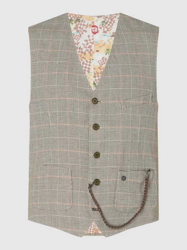 Die Weste von CG Club of Gents ist aus einer Leinenmischung gefertigt. Sie kommt in gerader Passform mit Glencheck-Muster, aufgesetzten Taschen und verstellbarem Riegel auf der Rückseite.