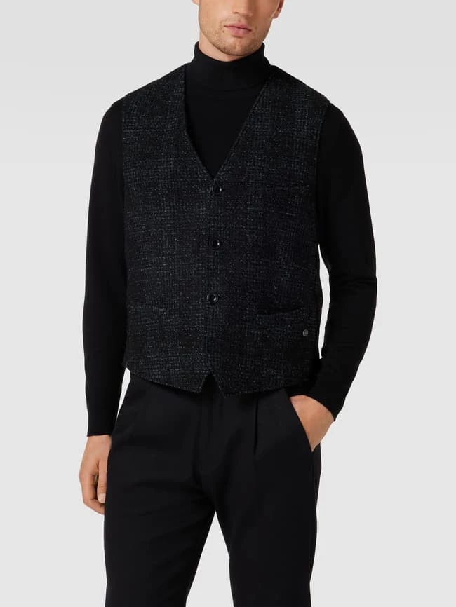Die Weste von CG Club of Gents ist aus einem Material-Mix mit Woll-Anteil gefertigt und gerade geschnitten. Sie kommt mit Label-Detail, Knopfleiste und V-Ausschnitt.