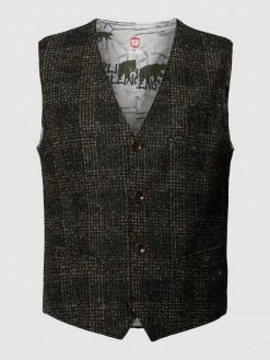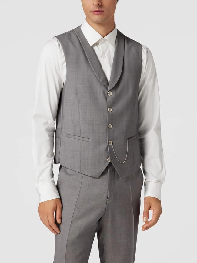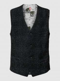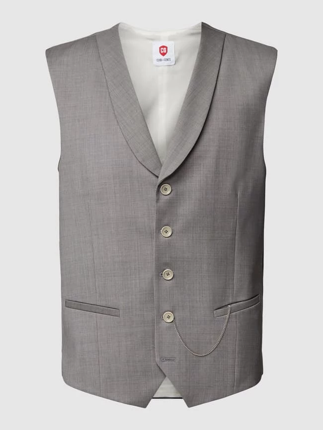 Die Weste von CG Club of Gents ist aus einem Schurwoll-Elasthan-Mix gefertigt und gerade geschnitten. Sie zeigt sich mit Leistentaschen und durchgehender Knopfleiste.
