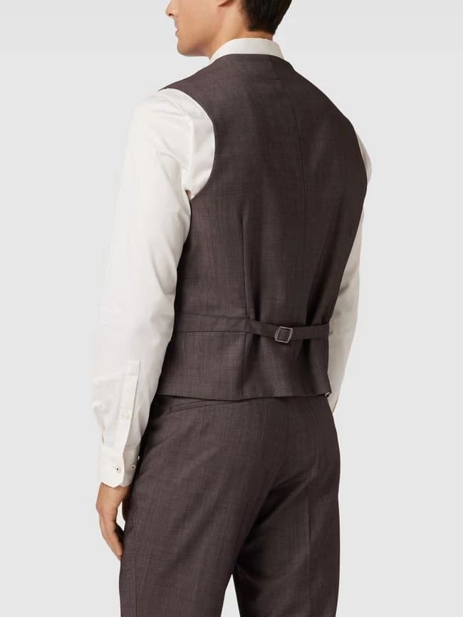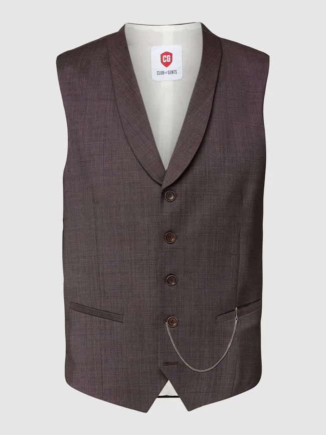 Die Weste von CG Club of Gents ist aus einem Schurwoll-Elasthan-Mix gefertigt und gerade geschnitten. Sie zeigt sich mit Leistentaschen und durchgehender Knopfleiste.