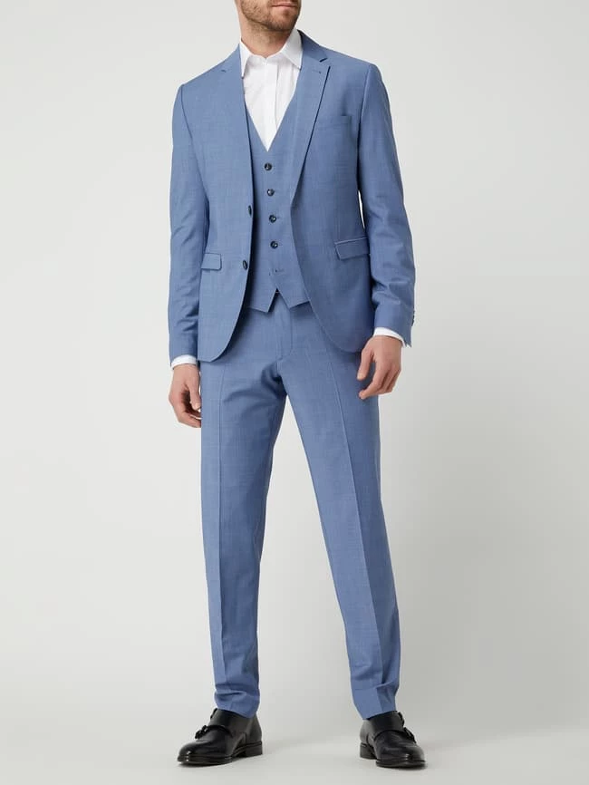 Die Anzughose von CINQUE ist aus fein strukturiertem Material gefertigt. Sie kommt mit schmal zulaufendem Bein, französischen Eingrifftaschen und Bügelfalten.