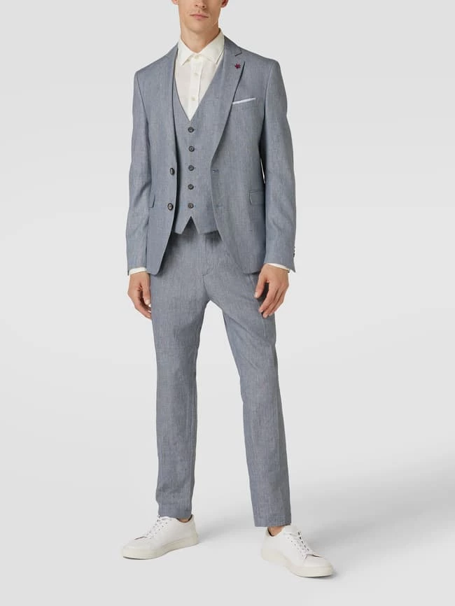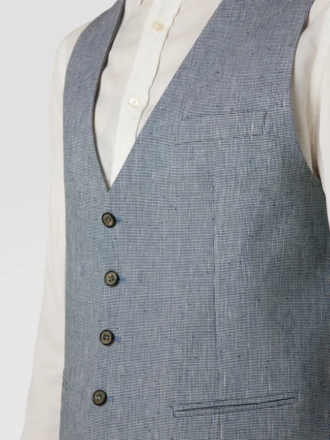 Die Weste von CINQUE ist aus einer Leinenmischung mit Baumwoll- und Stretch-Anteil gefertigt. Sie zeigt sich im Regular Fit mit Webmuster, Paspeltaschen und verstellbarem Riegel auf der Rückseite.