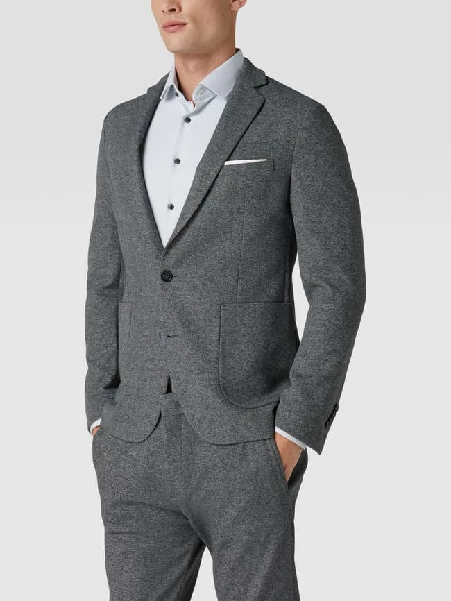 Das 2-Knopf-Sakko von CINQUE ist aus einem Material-Mix mit Baumwoll-Anteil gefertigt und im Slim Fit gehalten. Es kommt mit Strukturmuster, Reverskragen und aufgesetzten Eingrifftaschen.