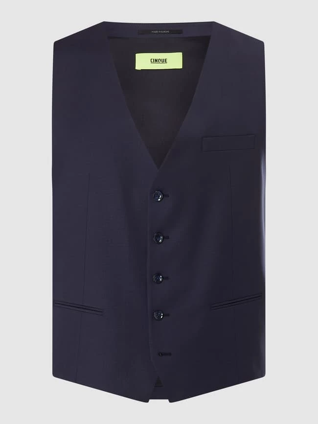 Die Weste von CINQUE ist aus einer Materialmischung mit Schurwoll- und Stretch-Anteil gefertigt. Sie kommt in gerader Passform mit V-Ausschnitt, Knopfleiste und Kontrastrückseite.