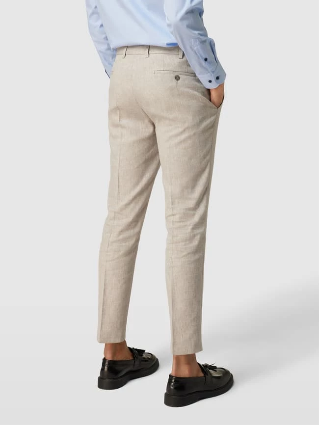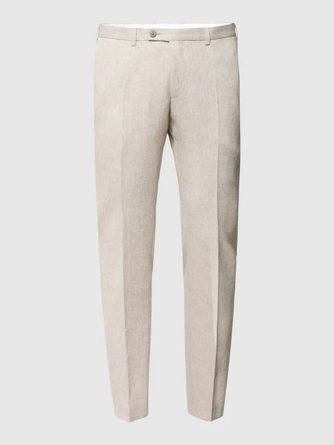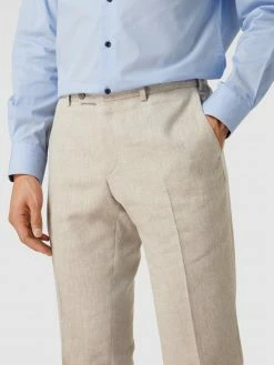 Die Anzughose von DIGEL ist aus einem Leinen-Mix mit Viskose-Anteil gefertigt und gerade geschnitten. Sie zeigt sich mit feinem Muster sowie Knopf-, Haken- und Reißverschluss.