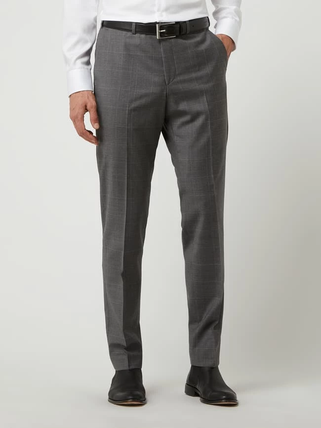 Die Anzughose von DIGEL ist aus reiner Schurwolle gefertigt und im Modern Fit gehalten. Sie zeigt sich mit Fensterkaro, französischen Eingrifftaschen und geknöpften Paspeltaschen am Gesäß.