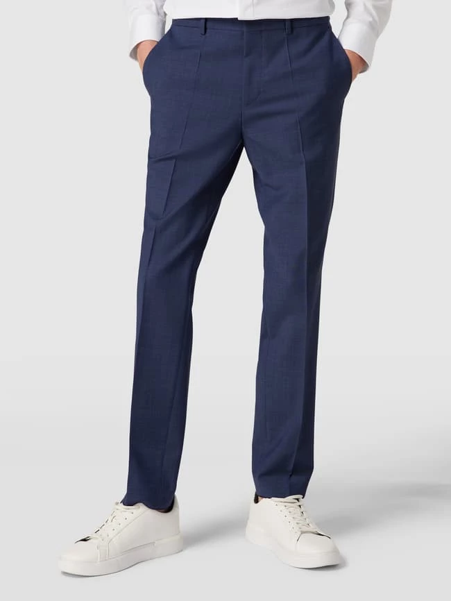 Die Hose von HUGO ist aus einem Schurwoll-Mix mit Stretch-Anteil gefertigt und gerade geschnitten. Sie zeigt sich mit Bügelfalten und französischen Eingrifftaschen.