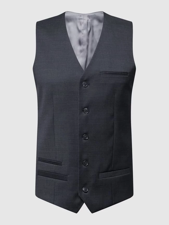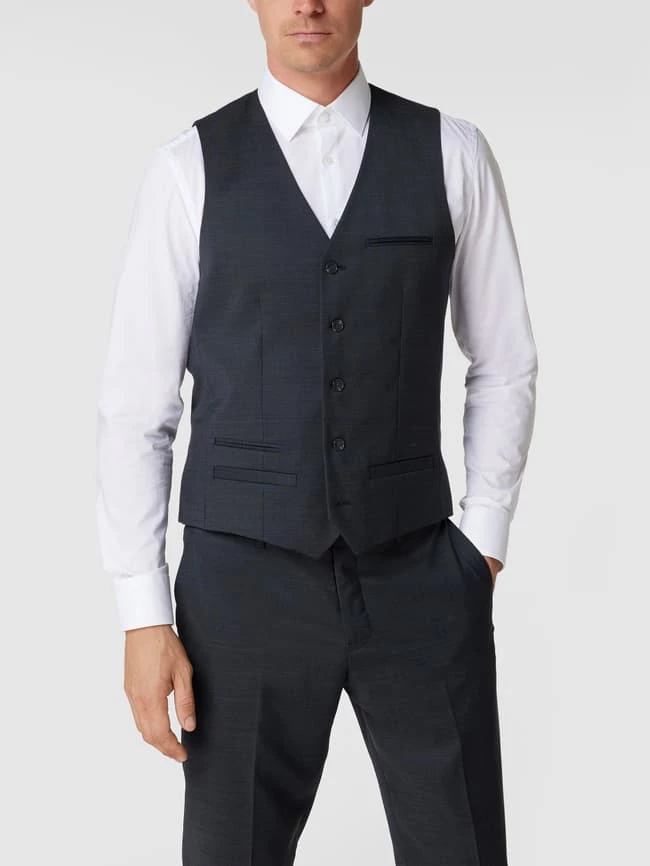 Die Weste von Matinique ist aus einer Wollmischung mit Stretch-Anteil gefertigt und schmal geschnitten. Sie kommt mit V-Ausschnitt, Knopfleiste und Paspeltaschen.