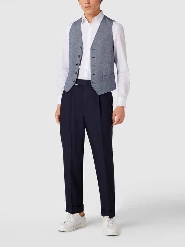 Die Weste von MCNEAL ist aus einem elastischen Material-Mix mit Viskose-Anteil gefertigt und gerade geschnitten. Sie zeigt sich mit Allover-Muster und durchgehender Knopfleiste.