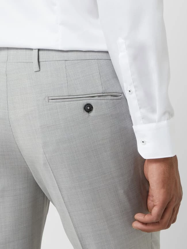 Die Anzughose von Pierre Cardin ist aus einer Materialmischung mit Schurwoll- und Stretch-Anteil gefertigt. Sie kommt in gerader Passform mit Webmuster, französischen Eingrifftaschen und Bügelfalten. Wussten Sie schon? Die Stretch-Funktion eines jeden ‘Futureflex’-Artikels ist besonders haltbar und übersteht viele Wäschen. Die “Recall in Shape”-Technologie garantiert einen optimalen Rücksprung in die Originalform, sodass ein Ausleiern verhindert wird.
