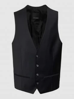 Die Weste von ROY ROBSON ist aus einem Schurwoll-Elasthan-Mix gefertigt. Sie kommt in gerader Passform mit V-Ausschnitt, Leistentaschen und verstellbarem Riegel auf der Rückseite.