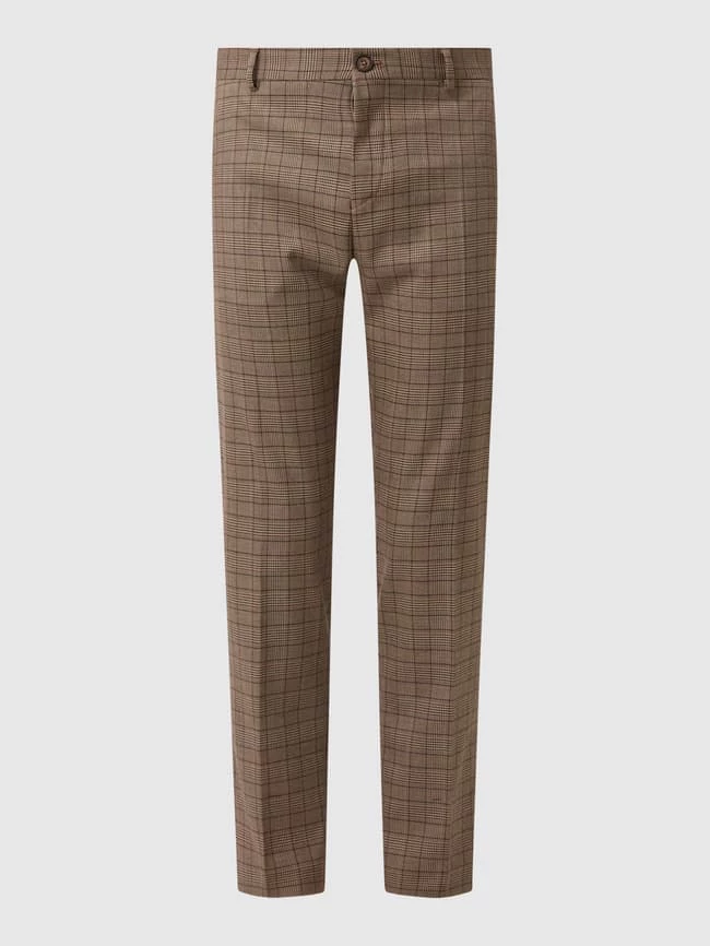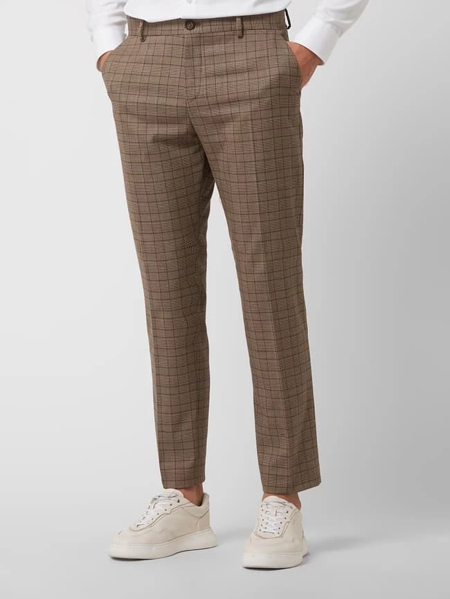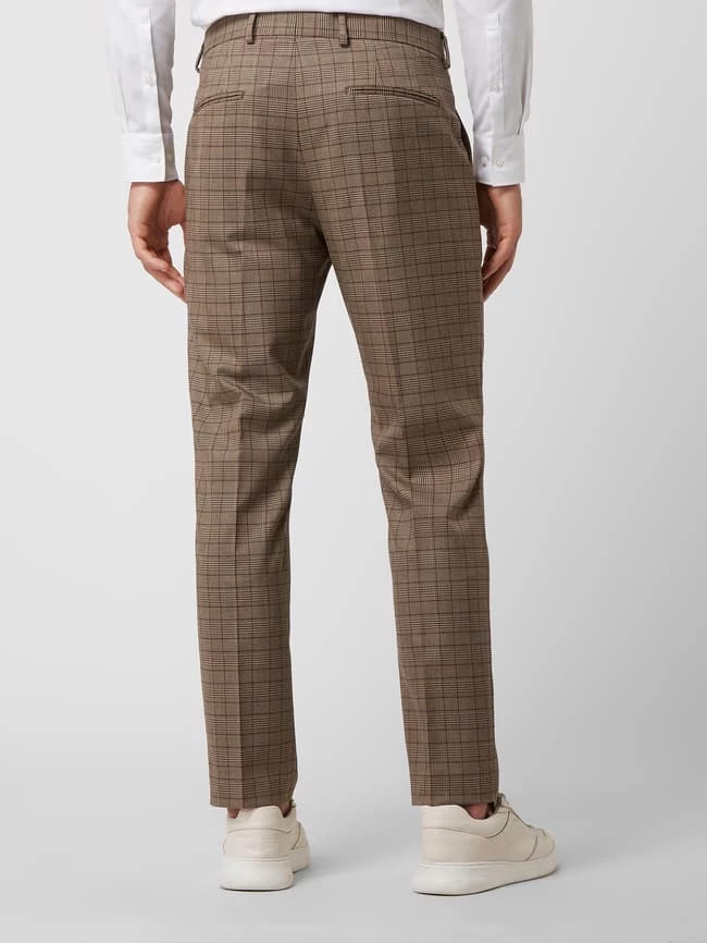 Die Anzughose von SELECTED HOMME ist aus einer Materialmischung mit recyceltem Polyester, Viskose- und Stretch-Anteil gefertigt. Sie kommt im Slim Fit mit Glencheck, Paspeltaschen und Bügelfalten.