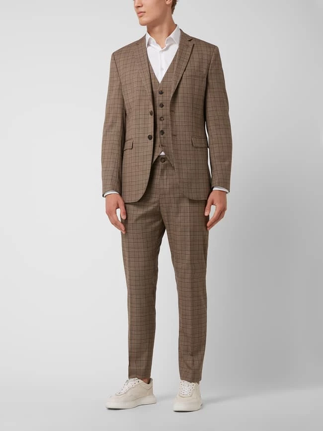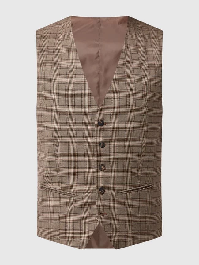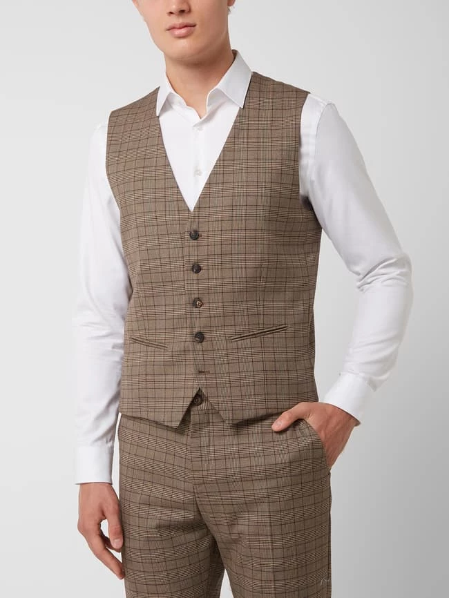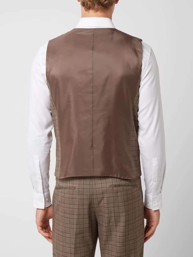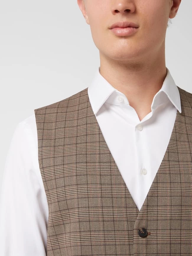 Die Weste von SELECTED HOMME ist aus einer Materialmischung mit recyceltem Polyester, Viskose- und Stretch-Anteil gefertigt. Sie kommt im Slim Fit mit Glencheck, V-Ausschnitt und Paspeltaschen.