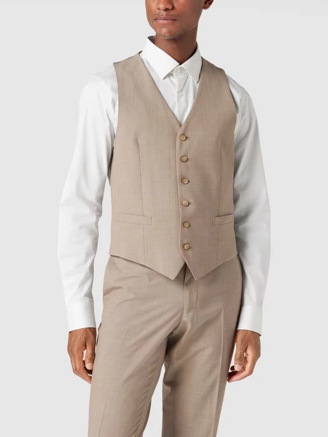 Die Weste von Tiger of Sweden ist aus einem Woll-Mix mit Stretch-Anteil gefertigt und im Regular Fit gehalten. Sie kommt mit V-Ausschnitt, Knopfleiste und Kontrastrückseite.