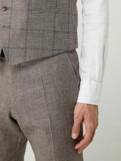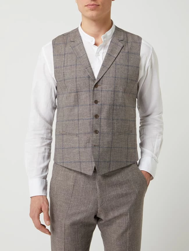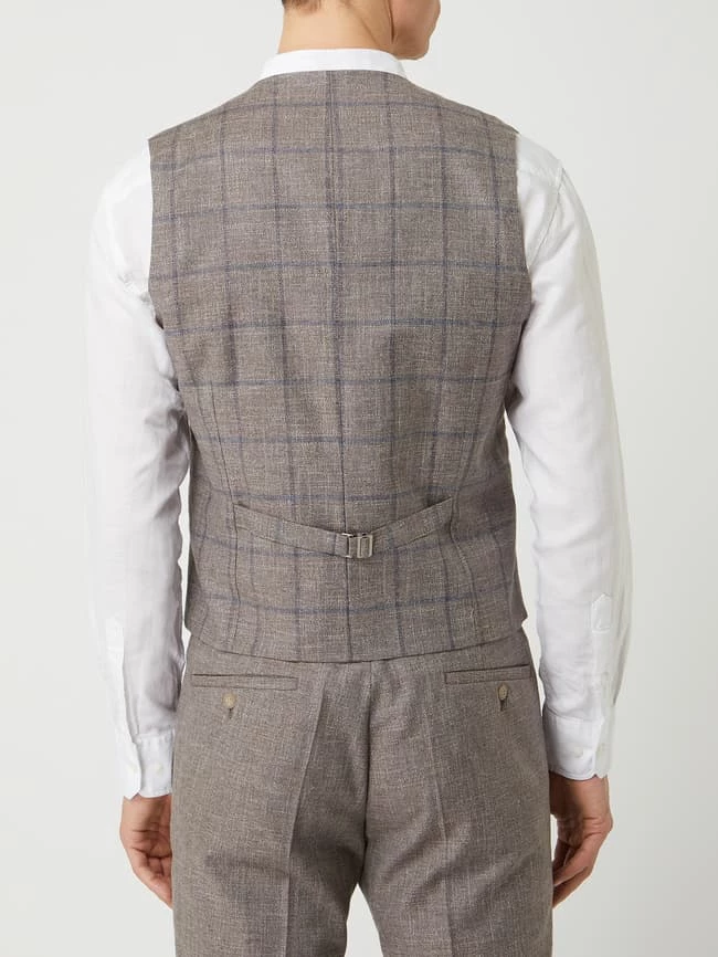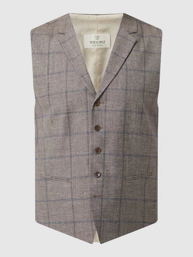 Die Weste von WILVORST ist aus einer Wollmischung mit Baumwoll- und Leinen-Anteil gefertigt. Sie kommt in gerader Passform mit Gitterkaro, Reverskragen und Paspeltaschen.