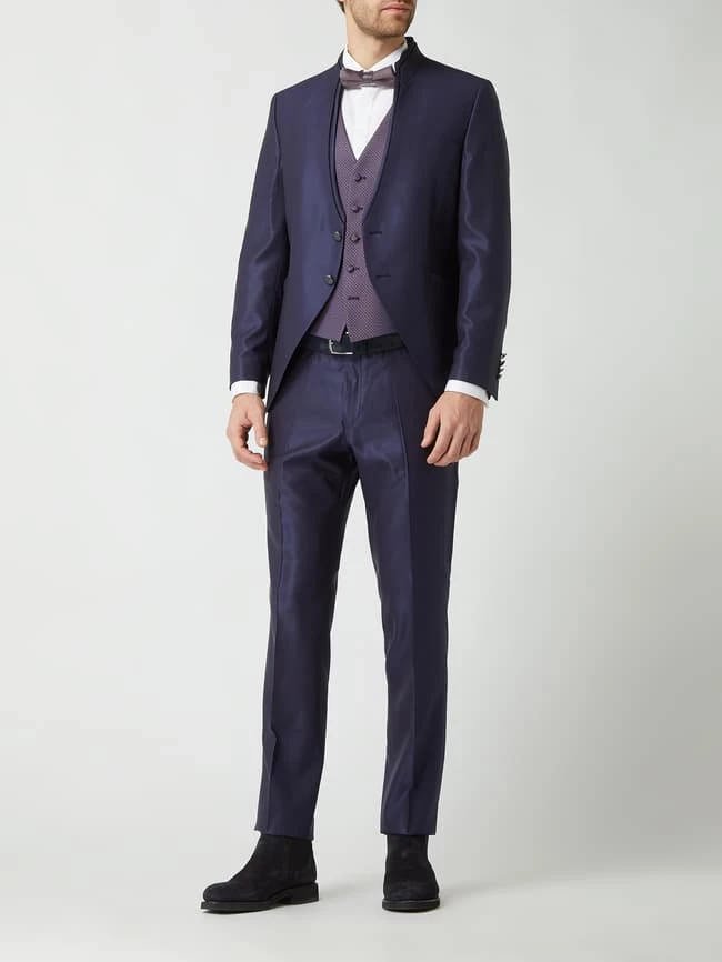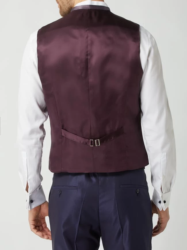 Die Weste von WILVORST ist aus schimmerndem Material gefertigt und leicht tailliert geschnitten. Sie kommt mit Webmuster, V-Ausschnitt und verstellbarem Riegel auf der Rückseite.